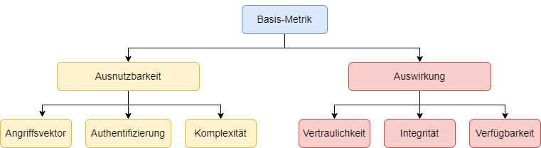 Die Basis-Metrik beschreibt, wie gefährlich eine IT-Sicherheitslücke ist und wie hoch das Potenzial ist, dass diese für Cyberangriffe ausgenutzt werden kann. Zur Berechnung werden die grundlegenden technischen Merkmale einer Schwachstelle herangezogen: Die Ausnutzbarkeit beschreibt zum Beispiel, unter welchen Voraussetzungen ein Angriff erfolgen kann. Mit der Auswirkung lässt sich das Ausmass eines Schadens ermitteln.