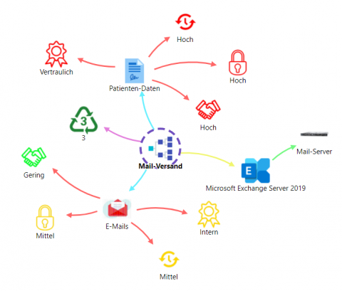 - in der Mitte ist der Prozess "Mail-Versand" sichtbar. Er hat die Kritikalität 3 (hoch).