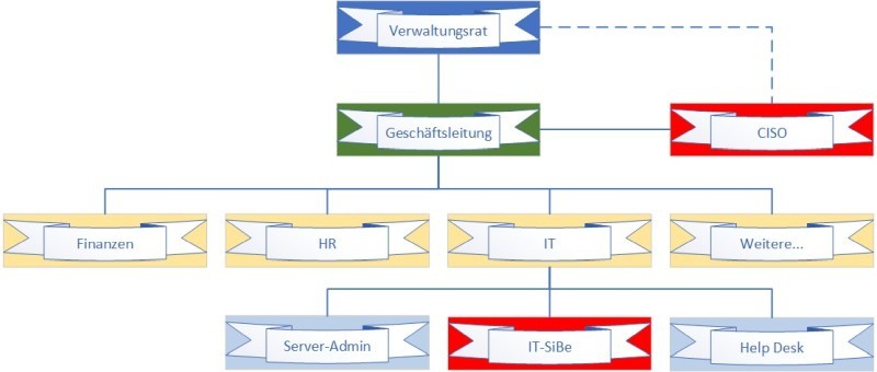 Die Funktion eines CISO wird benötigt, um die Aufsicht über alle Sicherheitsaspekte sicherzustellen. Die Funktion wird bewusst «Abteilungsneutral» positioniert, damit auf kurzen Kommunikationswegen bis hinauf zum VR zurückgegriffen werden kann. Je nach Struktur kann der CISO direkt dem VR oder der GL angehängt sein. Er ist in seinem Themengebiet weisungsfrei. Der/Die CISO arbeitet dabei eng mit dem CIO zusammen, damit ICT- und Sicherheits-Strategie optimal aufeinander abgestimmt sind.