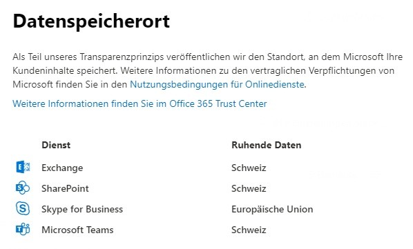 - Wo werden Daten gespeichert: https://docs.microsoft.com/de-de/office365/enterprise/o365-data-locations