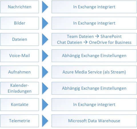 Wichtig bei Teams ist aber auch, wo welche Daten abgelegt werden. Dies sieht wie folgt aus: