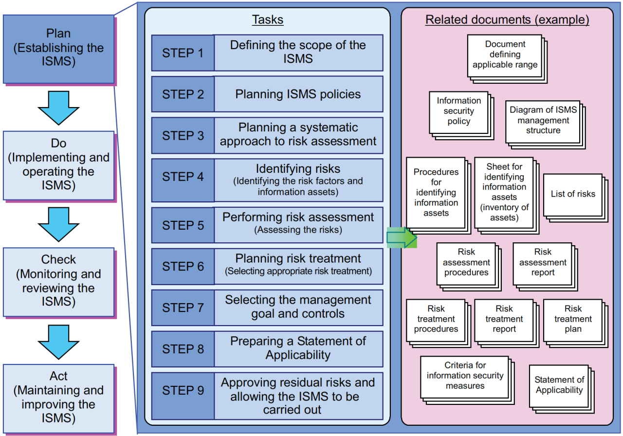 Aufgaben und zugehörige Dokumente zur Einrichtung des ISMS (Quelle: ISO 27799:2016, Seite 67)