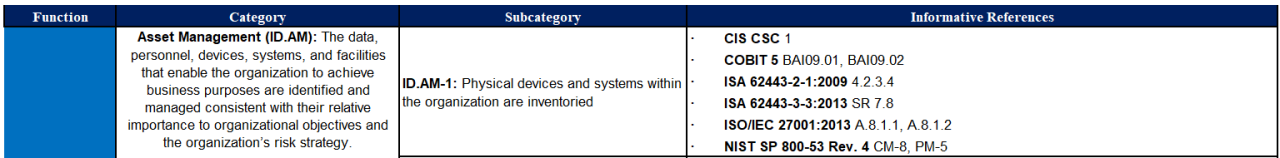 - Die letzte Spalte referenziert auf weitere Normen, wie CIS, COBIT, ISA, ISO oder NIST.