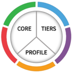 Die Stufen (Tiers) zeigen den Stand der Umsetzung an. Sie reichen von «Teilweise» (Stufe 1) bis «Angepasst» (Stufe 4) und zeigen damit wie gut die Cyberrisiken im Unternehmen integriert sind. Entgegen anderen Bewertungen wie dem CMMI (Capability Maturity Model Integration) stellen diese Stufen nicht unbedingt Reifegrade dar. Das Unternehmen definiert selber, welche Stufe es erreichen möchte und legt damit das akzeptierte Risiko-Niveau fest, in Anbetracht der technischen und finanziellen Möglichkeiten.