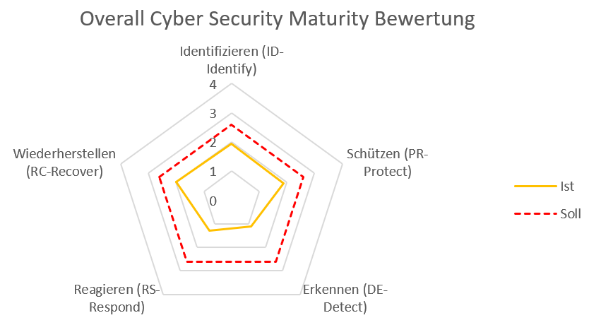 Wie in der Einleitung erwähnt, hat die Schweiz das NIST CSF übernommen und in den IKT-Minimalstandard überführt. Anhand der Empfehlungen kann die ICT-Resilienz verbessert werden. Es richtet sich zwar an kritische Infrastrukturen, kann aber in jedem Unternehmen genutzt werden. Bei der in Deutsch übersetzten Excel-Tabelle wurden weitere Normen, wie der BSI-Standard verlinkt. Das Self Assessment zeigt am Ende grafisch, wo noch Handlungsbedarf vorhanden ist.Das NIST Cybersecurity Framework richtet sich an alle Firmen, die einen umfassenden Überblick über ihre Informationssicherheit haben möchten. 108 Massnahmen in die 5 Kapitel Identifizieren, Schützen, Erkennen, Reagieren und Wiederherstellen unterteilt, zeigen den aktuellen Stand des Unternehmens und ermöglichen damit eine stetige Verbesserung.